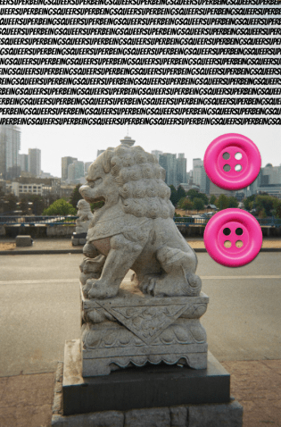 While the playful juxtaposition invites whimsy, deeper themes emerge upon closer look. The overlaid clipart reflects the artist’s intersectional identity, weaving fragmented memories—disciplinary slippers, reconciliatory citrus drinks, and farewell-sewn buttons—into a nostalgic playground where reclaiming memories becomes an act of identity-making.