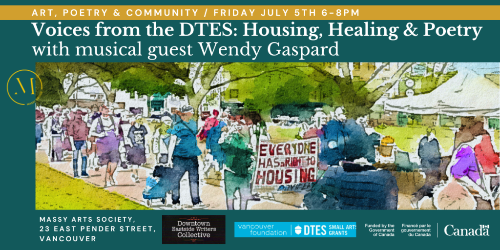 The event was made possible through the invaluable support of DTES Small Arts Grant & Massy Arts Society.
